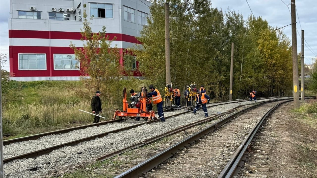 На данный момент реконструкция идет на улице Машиностроительная, где дорожники меняют изношенные шпалы на новые.