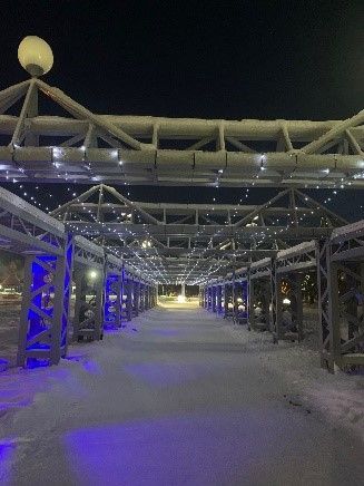 Шишкинский бульвар украшают световой гирляндой «Звезда», инсталляциями: «Шишки», «Елки», «Шары», в парке культуры и отдыха – «Елки», «Полусферы».