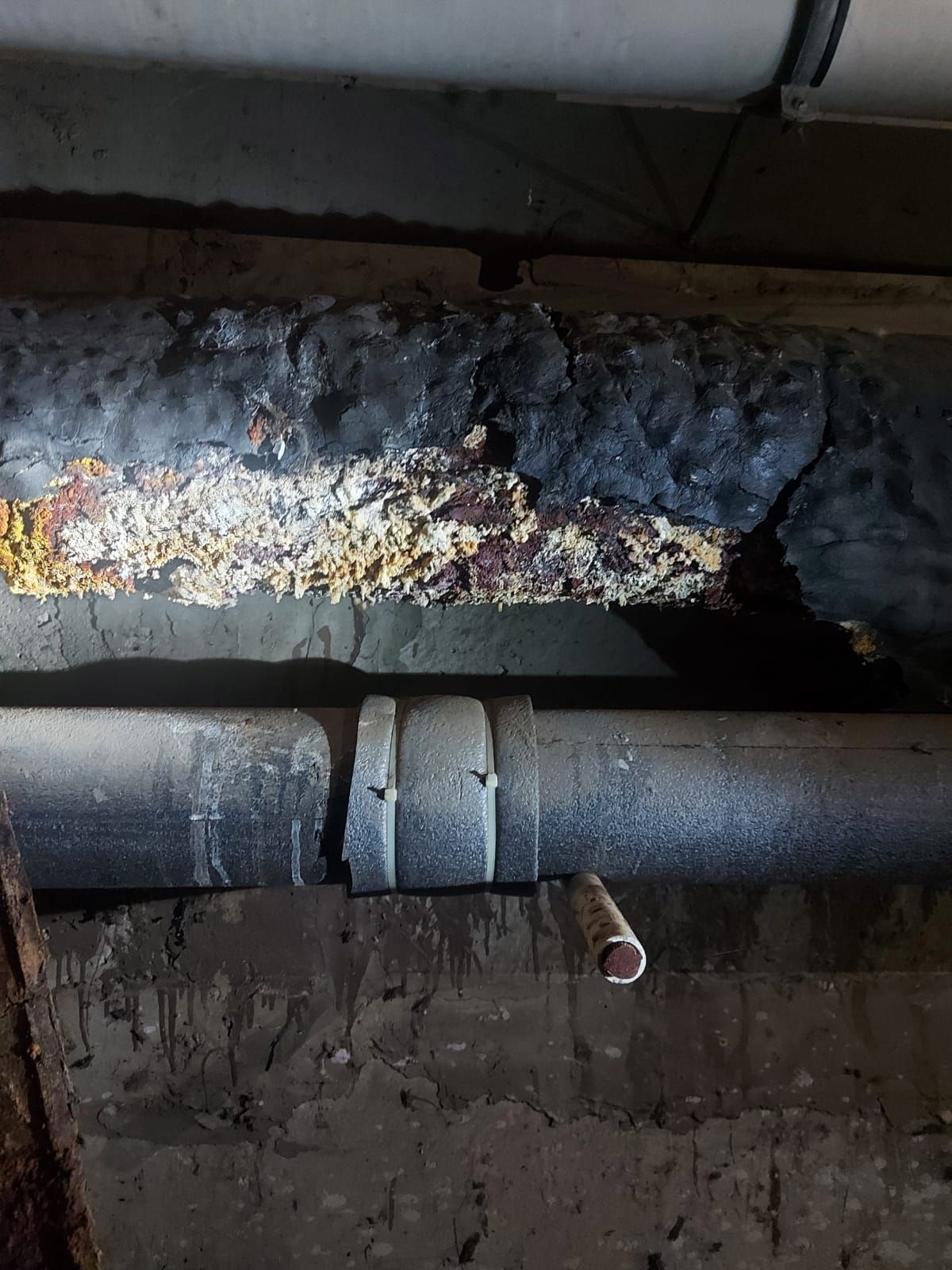 В реальности же в подвалах специалисты обнаружили ржавые протекающие трубы без теплоизоляции. Трубопроводы не имели опор – нависали над полом. Отмостка была в трещинах и другое. Любое из этих нарушений могло стать причиной аварийной ситуации, а значит привести к отключениям.