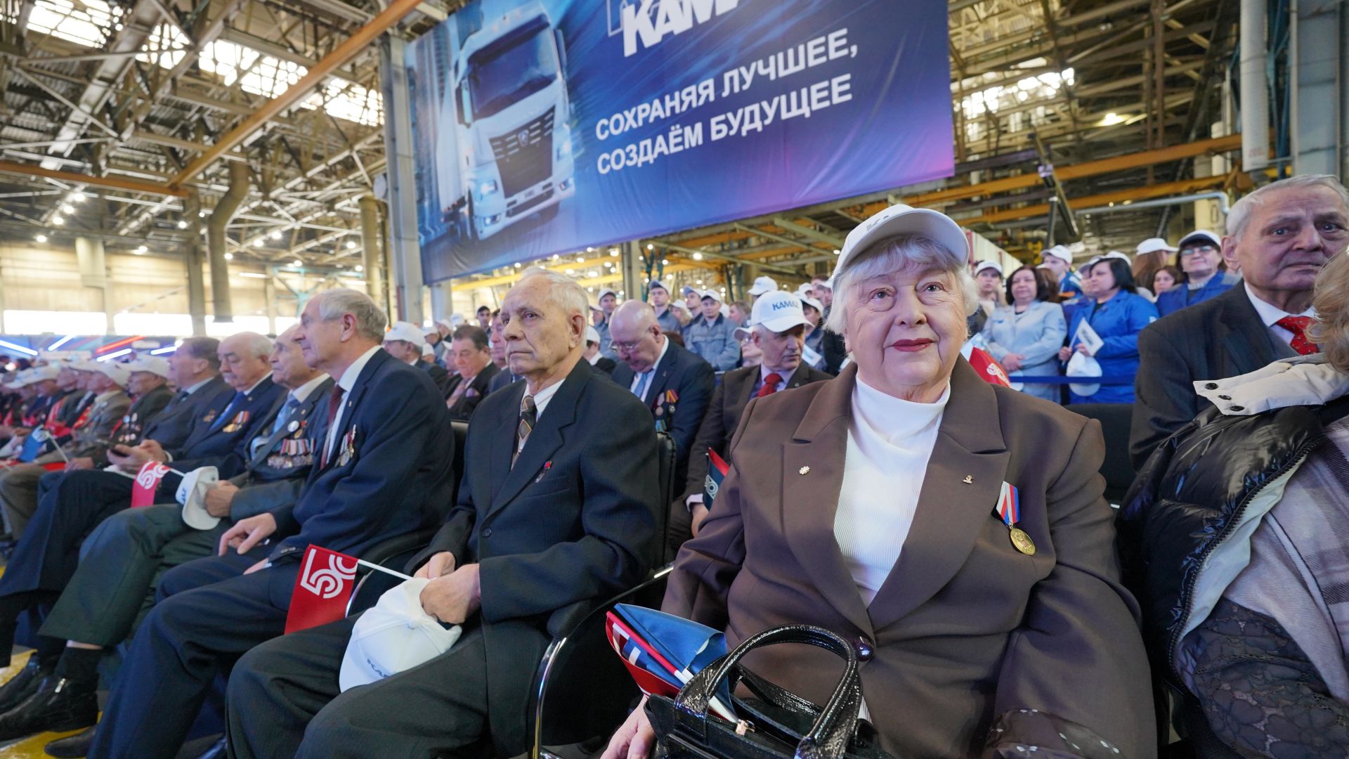 Среди почетных гостей - участники первой сборки автомобиля: в первом ряду размещены седовласые мужчины в пиджаках с медалями – те, кто приехал сюда, когда города еще не было. Один из них – Геннадий Сергеевич Баштанюк. Он припоминает, каким увидел камский берег в начале 70-х. «1972 год, октябрь; высадился на камском берегу, поднялся наверх, а там шесть вагончиков», – перебирает ветеран труда ворох воспоминаний.