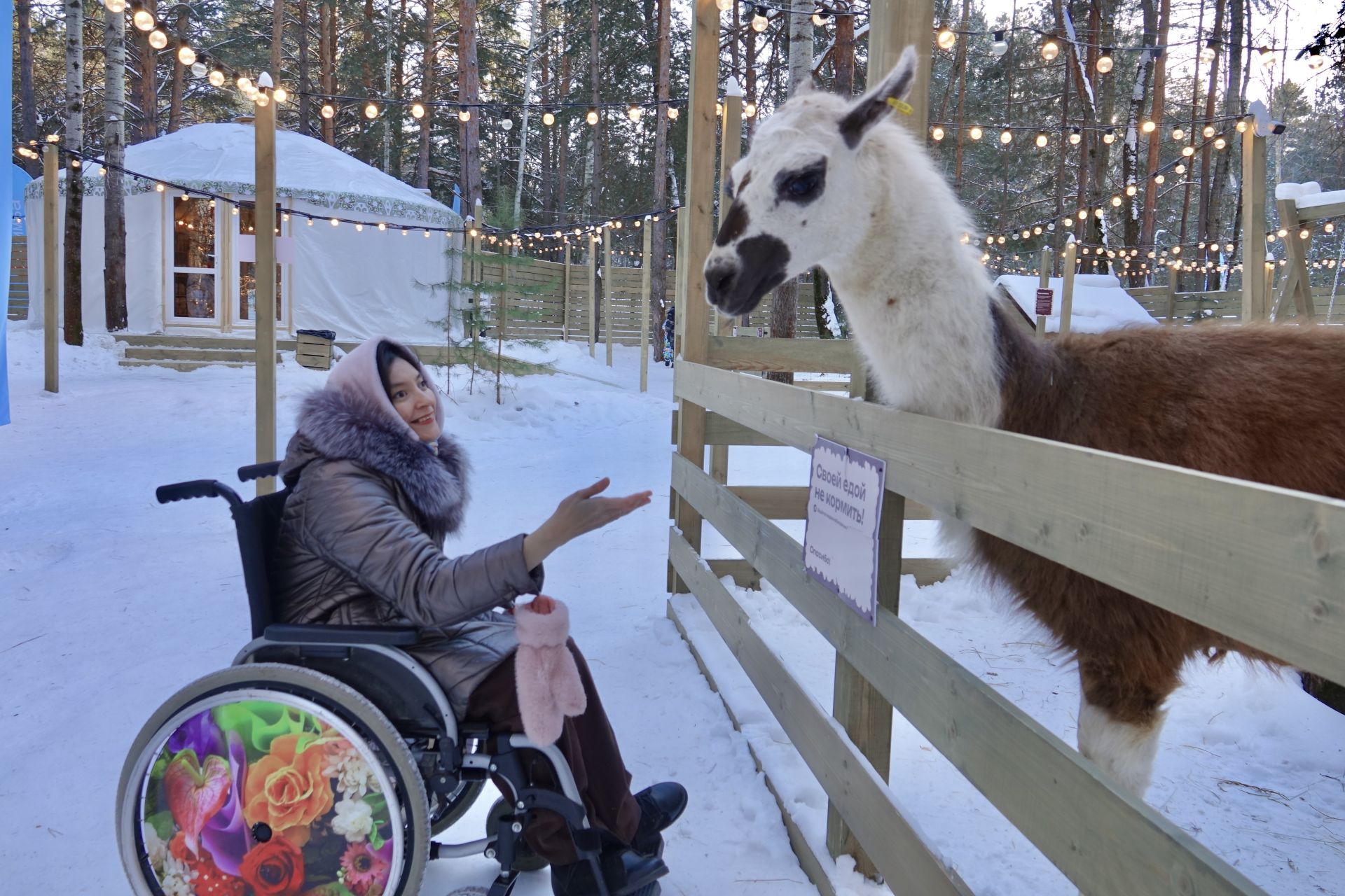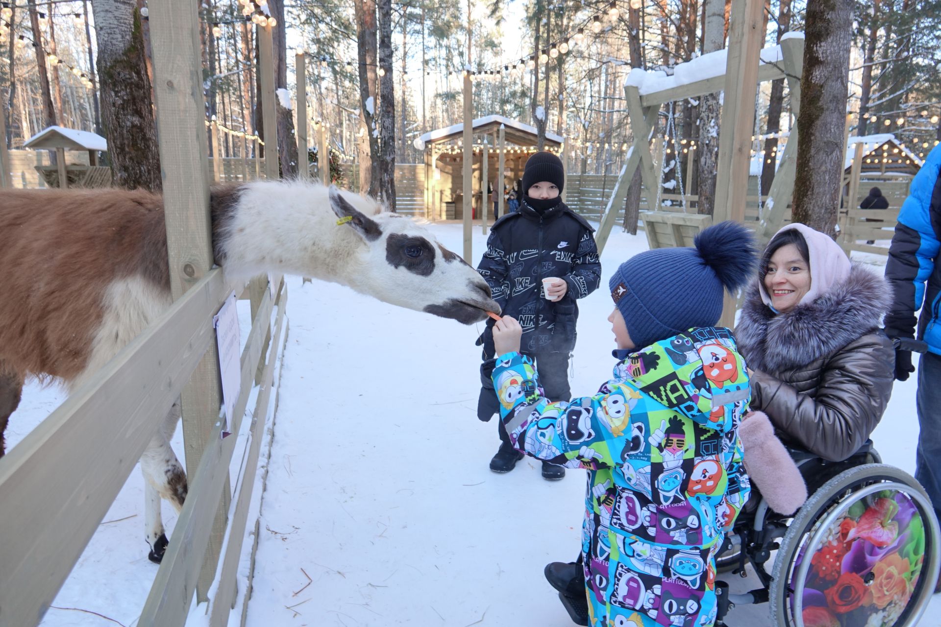 «Все смогли насладиться компанией альпак, лам, кроликов. Приятно, что территория доступна для людей в инвалидных колясках. Были в парке полтора часа, на протяжении всего нашего посещения с нами рядом находился сотрудник, в которому можно было всегда обратиться. Изучили информационные таблички про обитателей, покормили их морковью. Пришлось идти за добавкой – детям понравилось угощать вкусностями местных обитателей. Мне больше понравились альпаки, а детям – кролики. Нас угостили горячим чаем и печеньем», – поделилась впечатлениями Эльза Ярушкина.