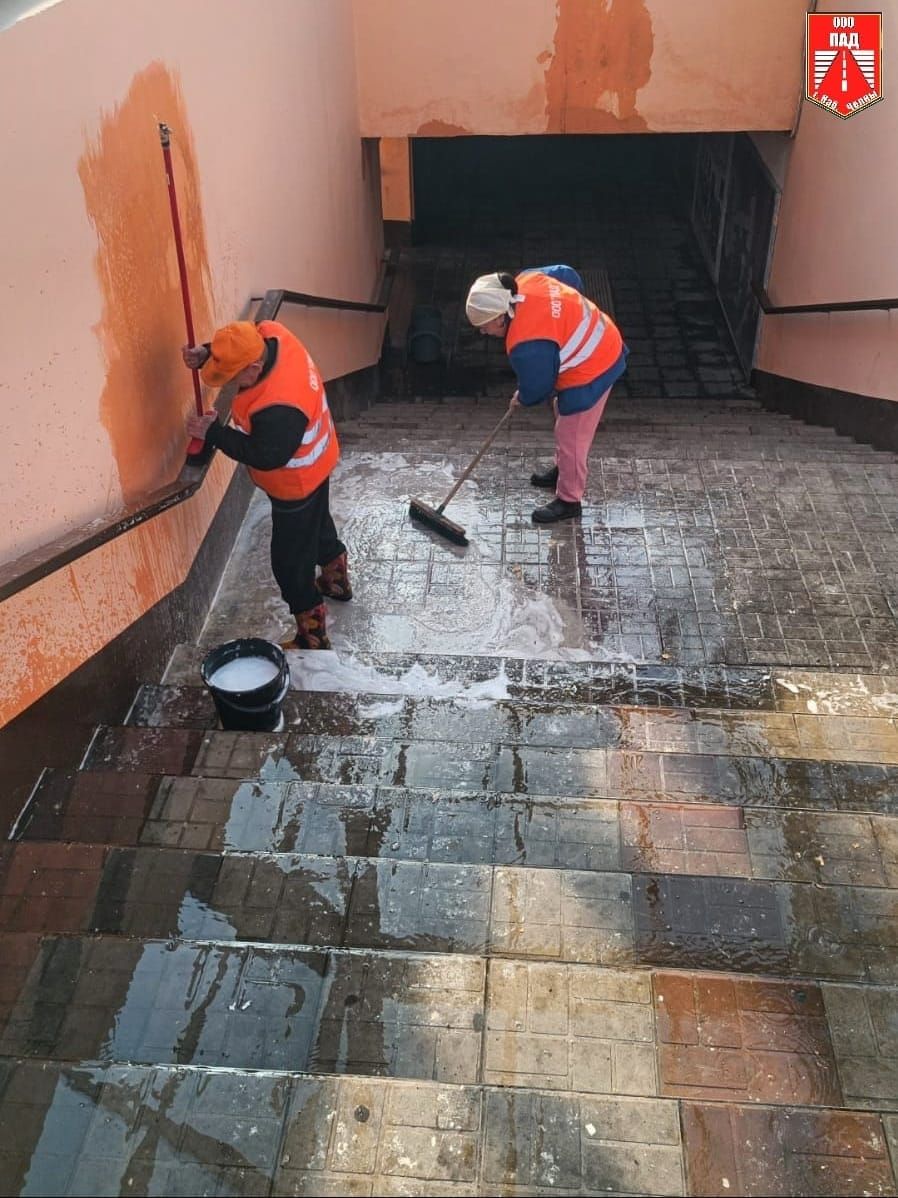 Сотрудники предприятия автомобильных дорог провели генеральную уборку подземки на остановке «Энергостроительный техникум», чтобы устранить последствия кулинарного вандализма подростков.