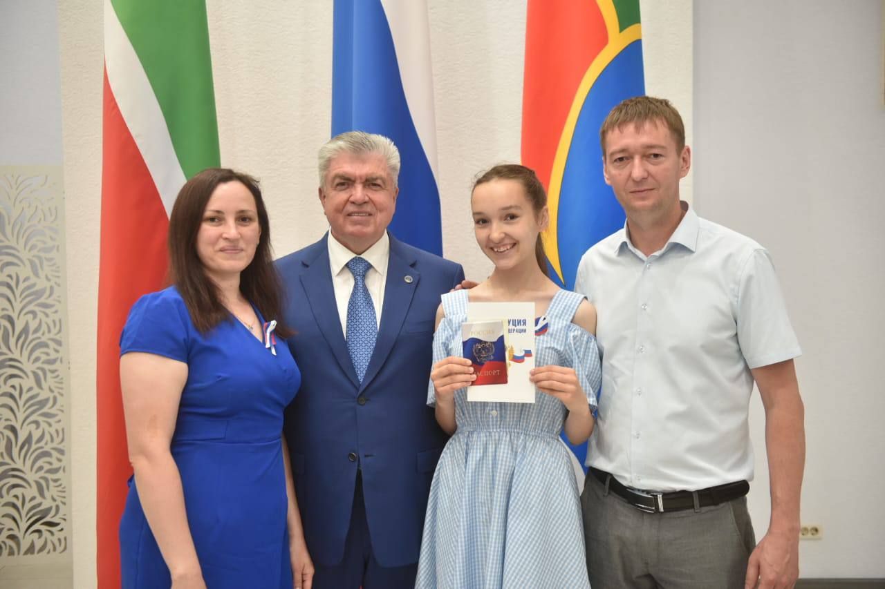 Наиль Магдеев отметил, что дети получают документ в особенный год – 80-летия Победы, Год защитника Отечества и в преддверии важного национального праздника – Дня России.