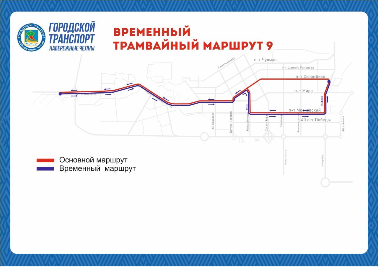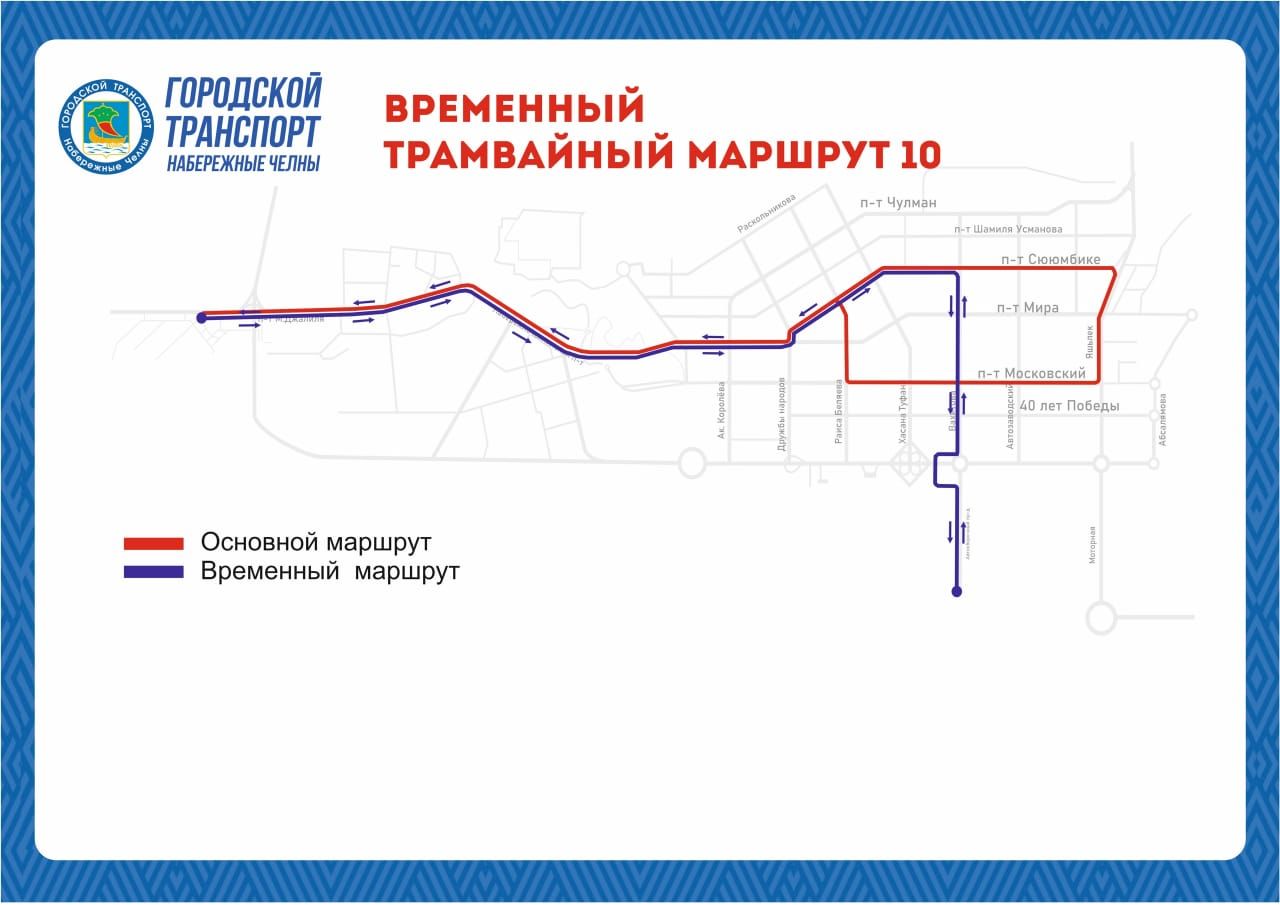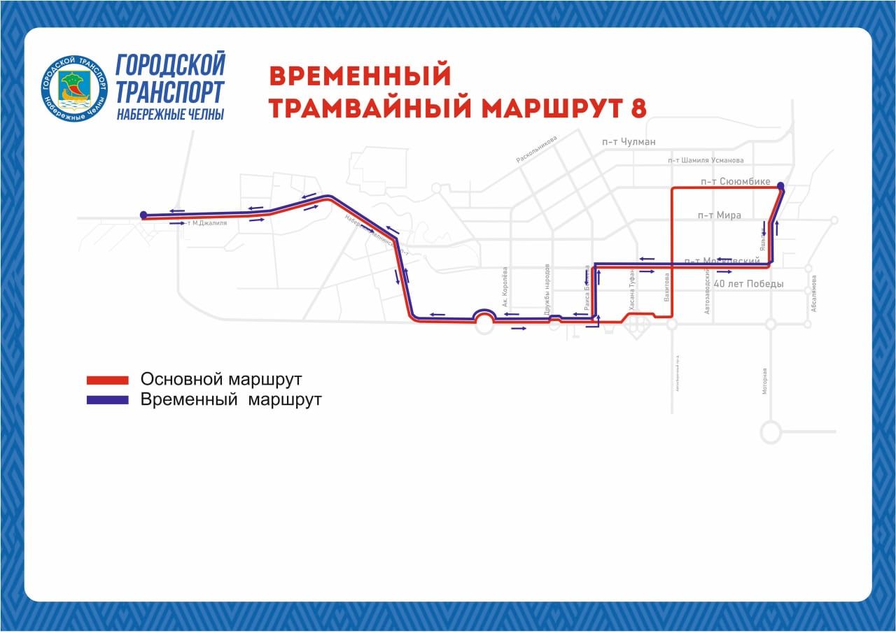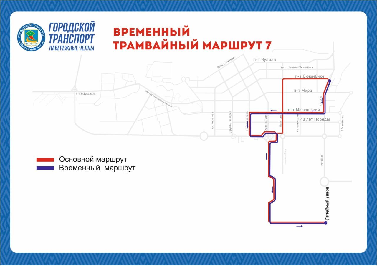 В Набережных Челнах 11-12 октября в связи с ремонтными работами на теплосетях на улице Татарстан меняется схема движения трамваев шести маршрутов. Один маршрут полностью отменяется.
