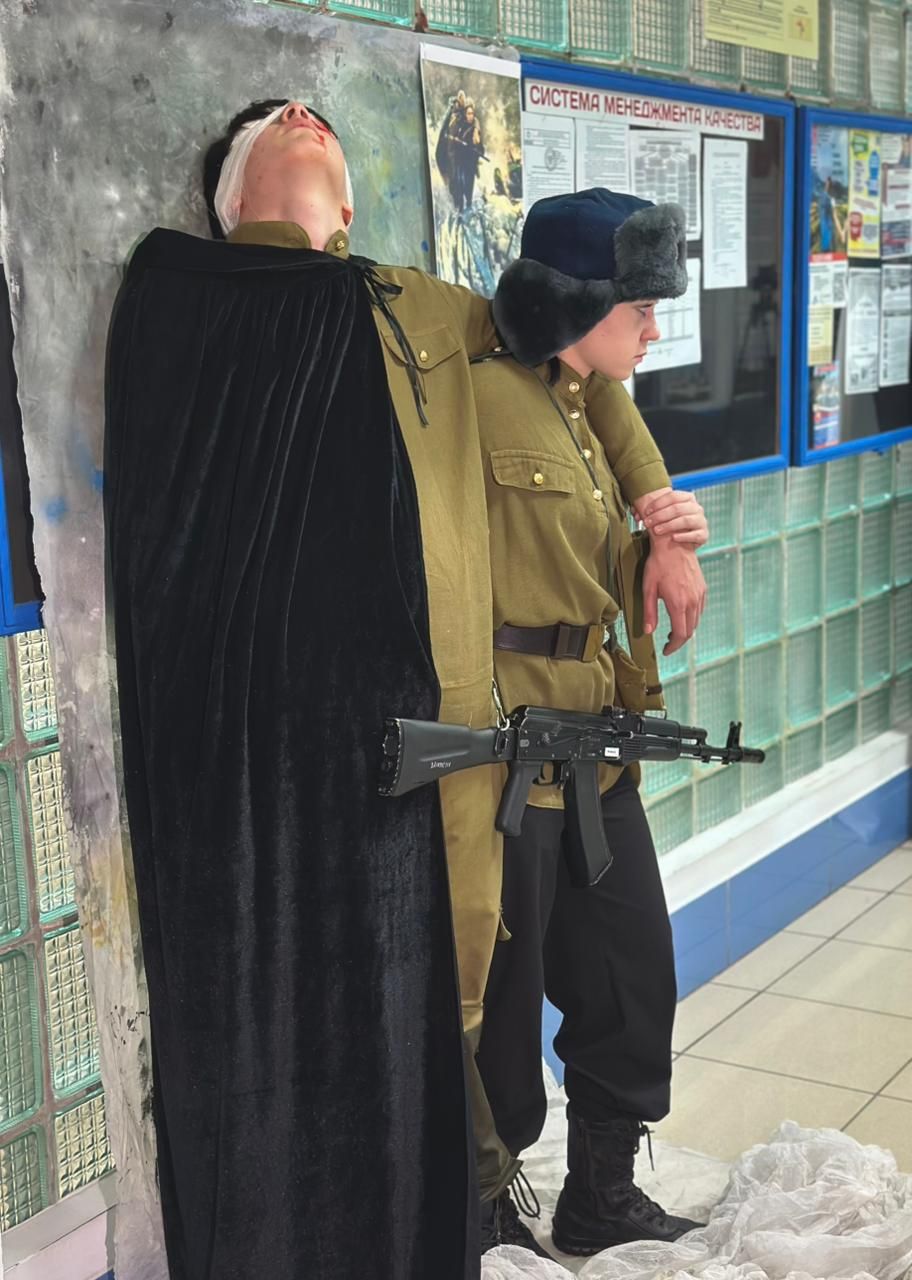 Здесь же, ожившие образы героев из полотен фронтовых художников Марата Самсонова «Сестрица» и Бориса Неменского «Машенька», инсценировка эпизода спасения раненого бойца по повести Виктора Некрасова «В окопах Сталинграда» и другое.