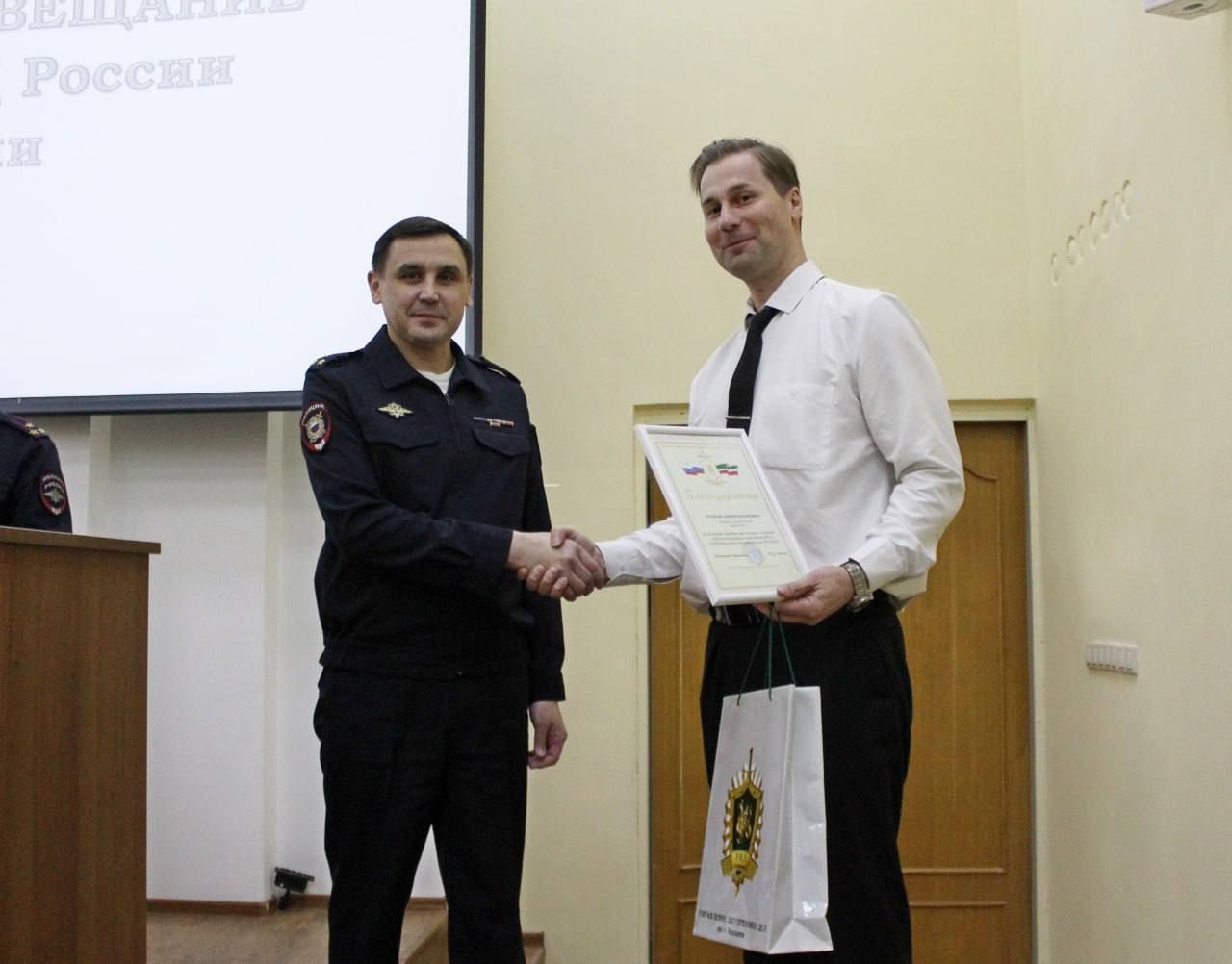 Начальник Управления МВД России по Казани полковник полиции Ринат Габитов вручил награды Лейсан Хуснутдиновой и Андрею Почанову за неравнодушие и активную гражданскую позицию.