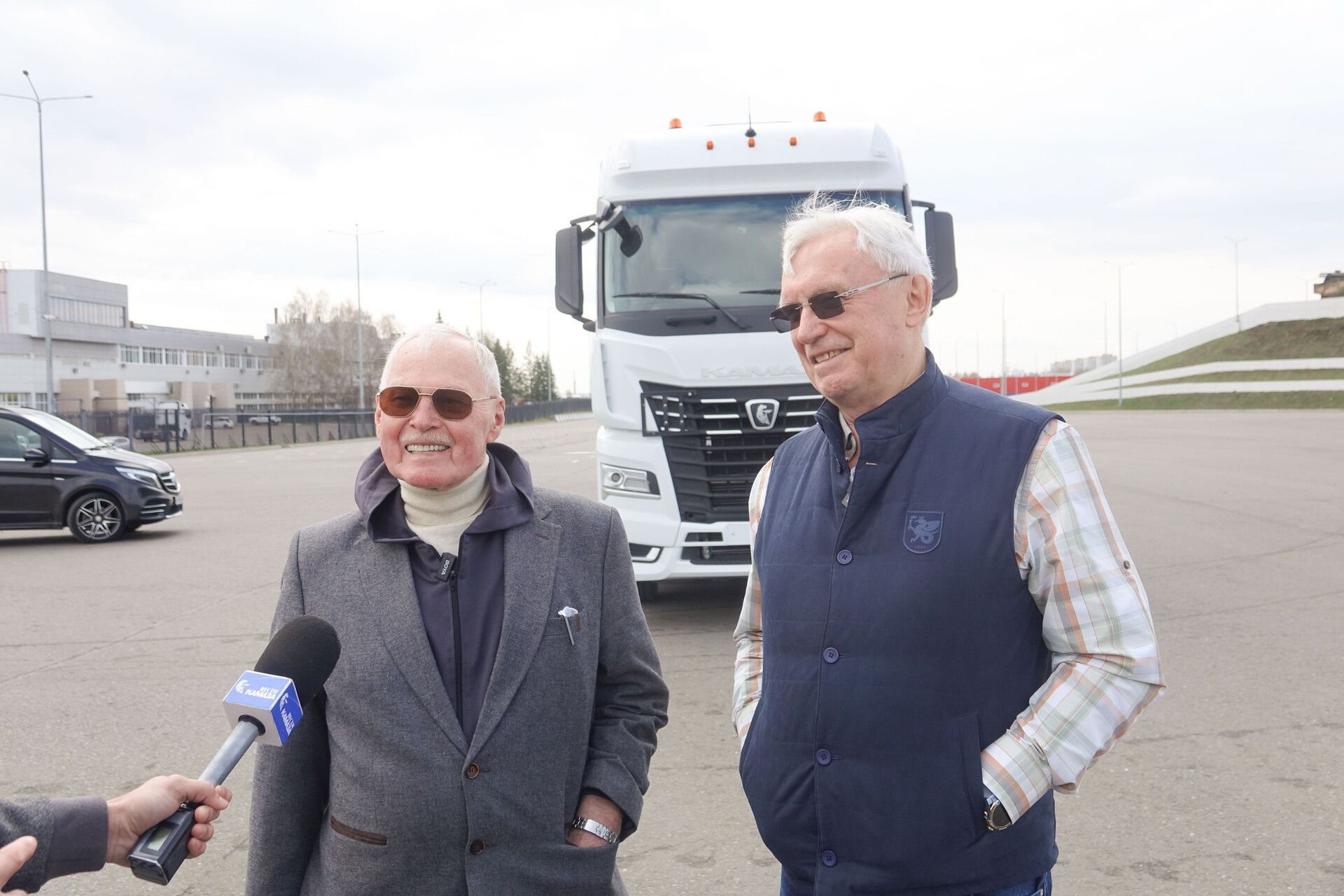 Сначала генеральный директор компании КАМАЗ Сергей Когогин, по приглашению которого актер и прибыл в автоград, прокатил «дальнобойщика Иваныча» на большегрузе КАМАЗ-54901. Гостюхин признался, что при взгляде на «КАМАЗ» всегда испытывает трепетные чувства и ностальгию. Причем сам он на съемках не управлял им, потому что было бы сложно одновременно вести и фуру, и динамичный диалог. Когда снимались крупные планы, то использовалась точная копия настоящей кабины на платформе.