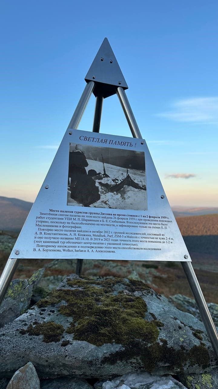 – У подножия большой горы Холатчахль, на склоне которой погибли ребята, есть мемориал в честь «дятловцев», – рассказывает Эльнар. – У небольшого монумента из пластика высотой 3,5 метра, который стоит на месте палатки, мы почтили память погибших минутой молчания.