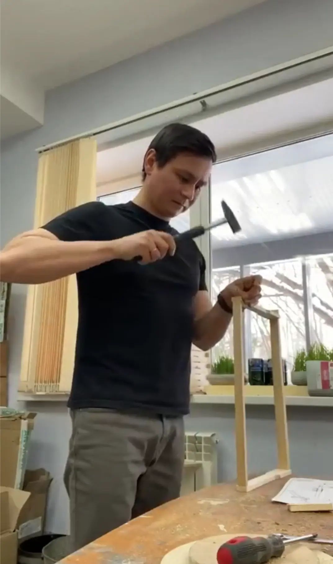 По традиции Марсель заранее готовится к сезону. К примеру, в мастерской театра он сам изготавливает рамки. Вообще, его руки уверенно держат разные рабочие инструменты, поэтому и ремонтом ульев он занимается сам.