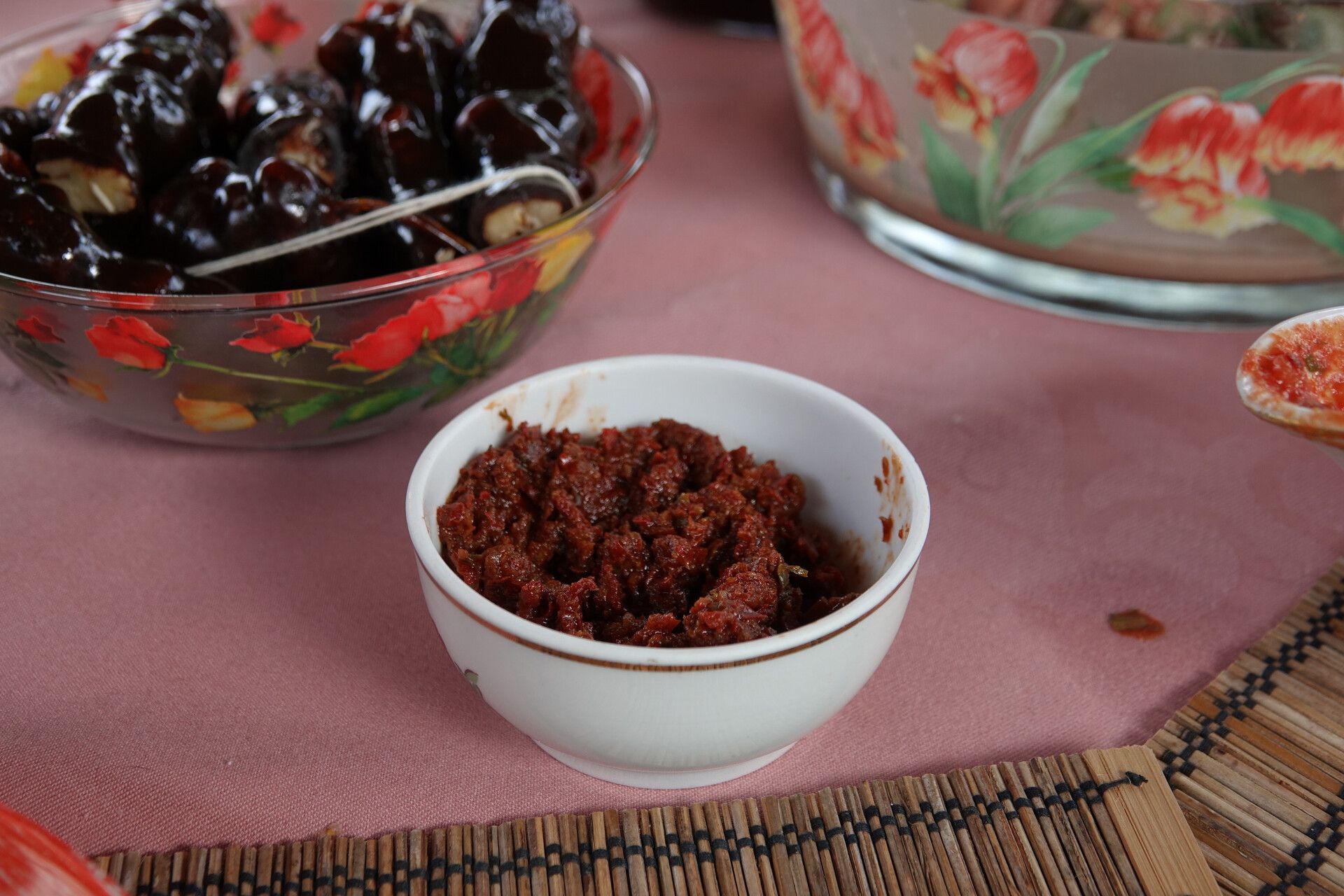 Невозможно представить обед семьи Дидия без харчо, люля-кебаб, купатов, хинкали или хачапури. А кулинарный шедевр шеф-повара - шашлык на мангале с березовыми и дубовыми дровами был готов буквально через полчаса. Пытались узнать рецепт маринада, но Автандил лишь загадочно улыбался. Его жена шепнула, что главный секрет – в винном уксусе, который он делает сам. Также, как сладко-кислый соус и жгучую аджику, сразу по 20 килограммов. А супруге муж доверяет нарезать салаты. Казалось бы, все обычно: огурцы, помидоры, кинза, чеснок, оливковое масло, но его украсил один ингредиент - грецкие орехи.