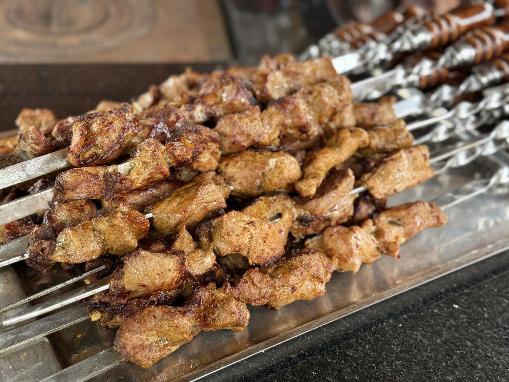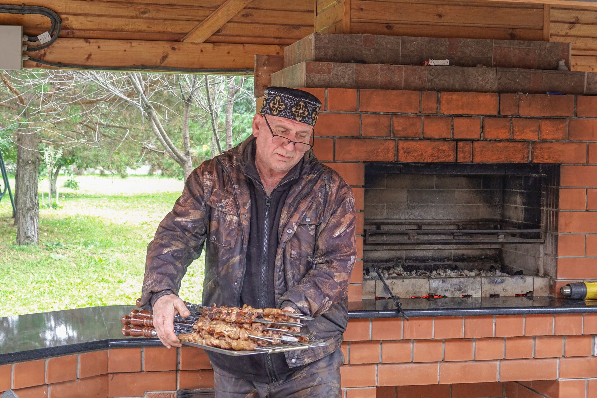 Гараж он превратил в национальную кухню, где сам шеф-повар. Примечательно, что все любимые специи – хмели-сунели, омбало, кориандр, тимьян и другие, виноград оптом по 400 килограммов для домашнего вина заказывает на родине. А продукты местные: свежее мясо, овощи, фрукты и зелень - с рынка, мука и прочие товары – из магазинов города. Лишь яблоки из своего сада: крупные, в руке не удержать.
