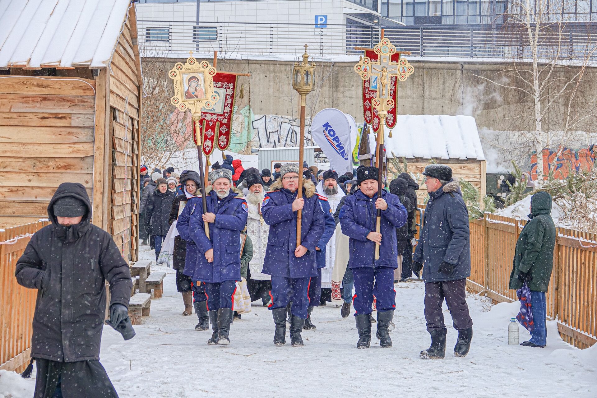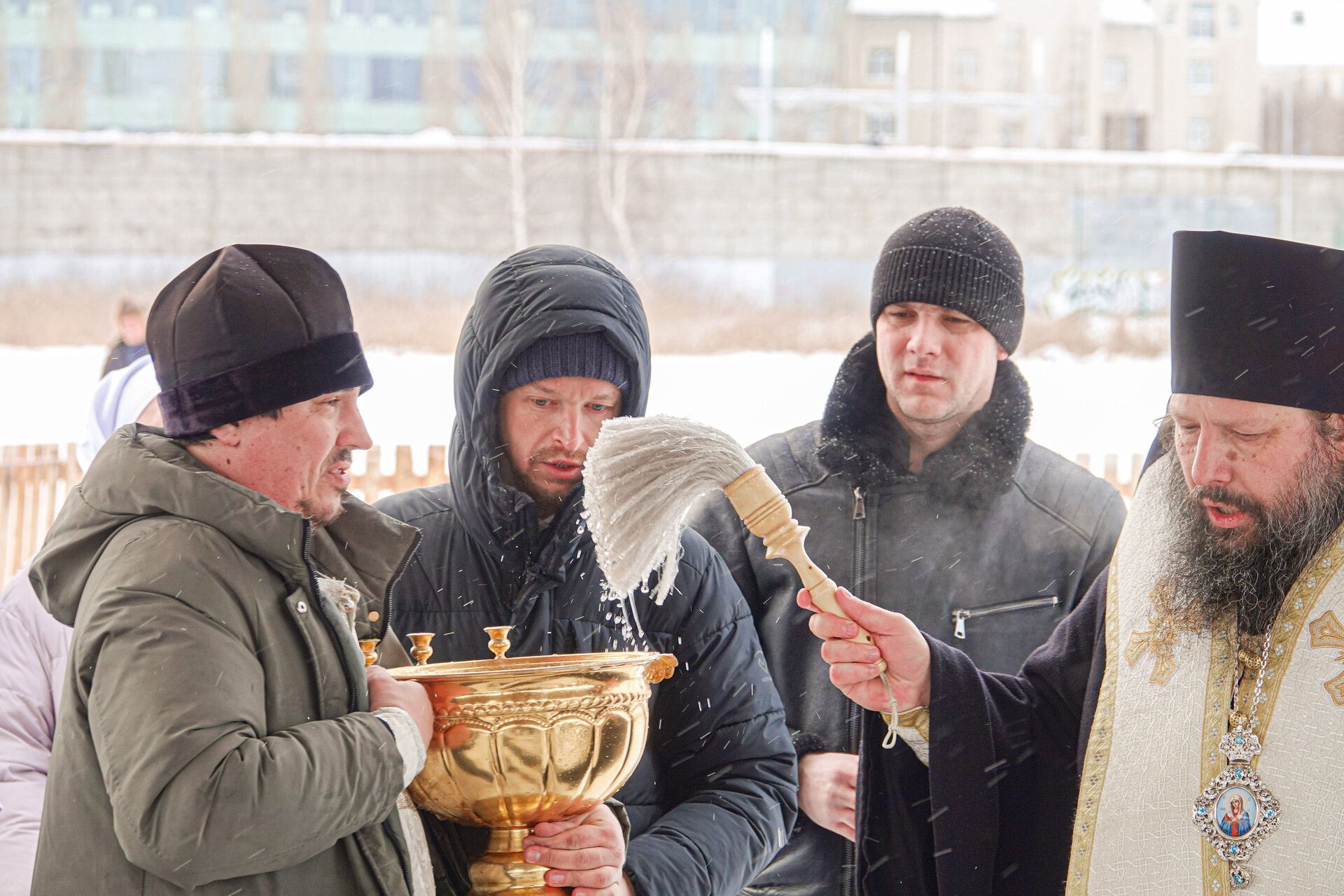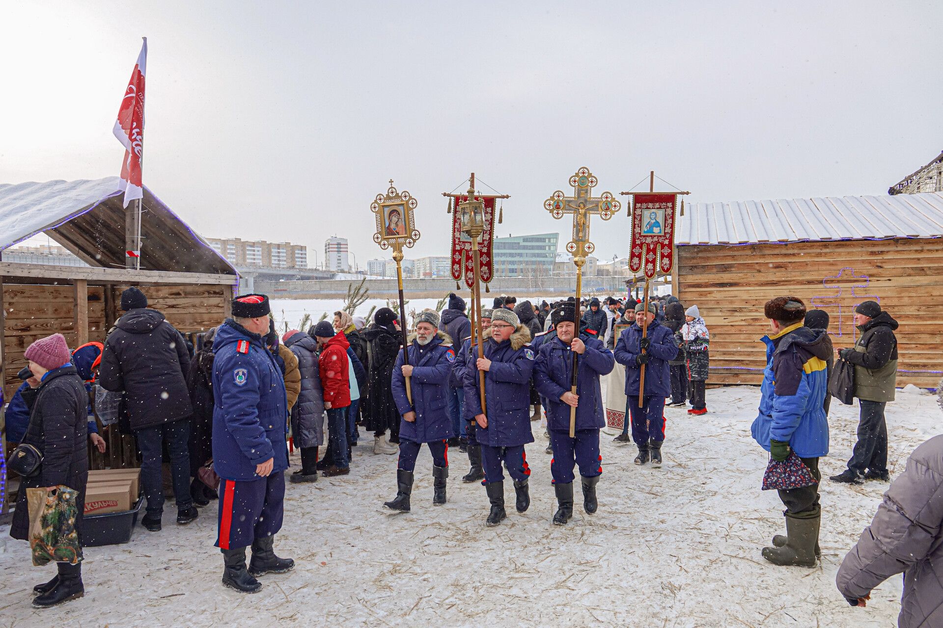 После обряда освящения воды ею окропили многочисленных горожан, которые собрались у купели.