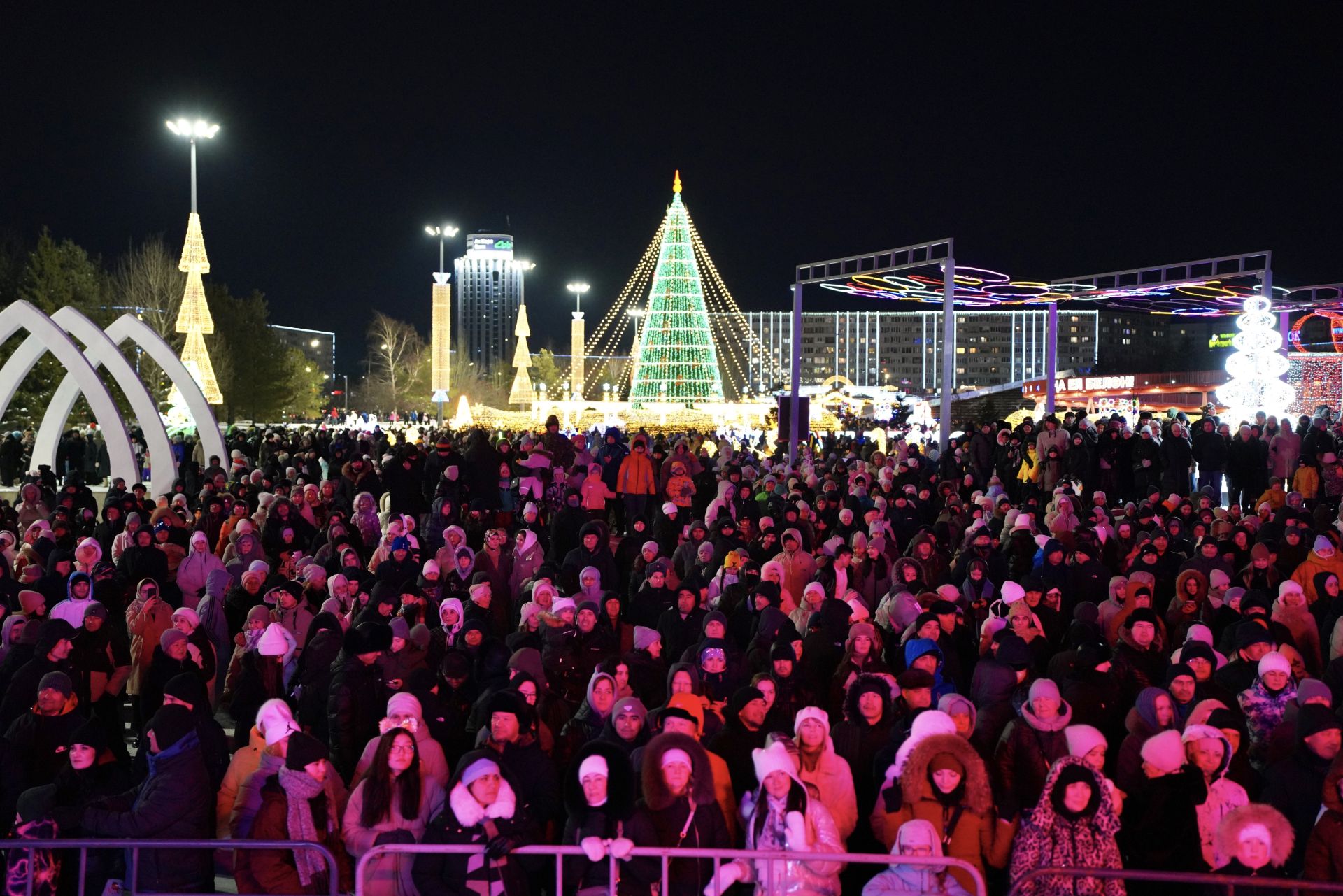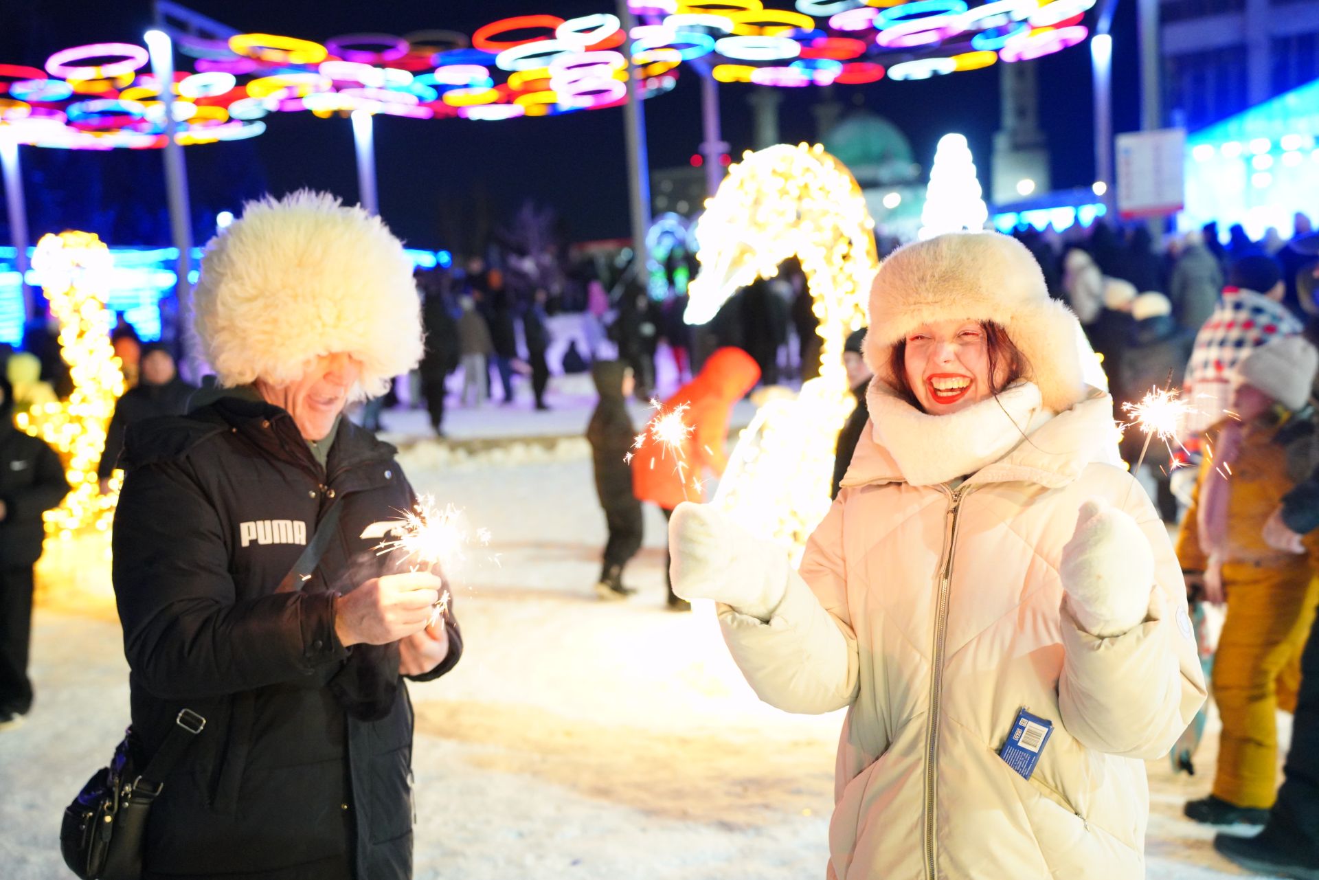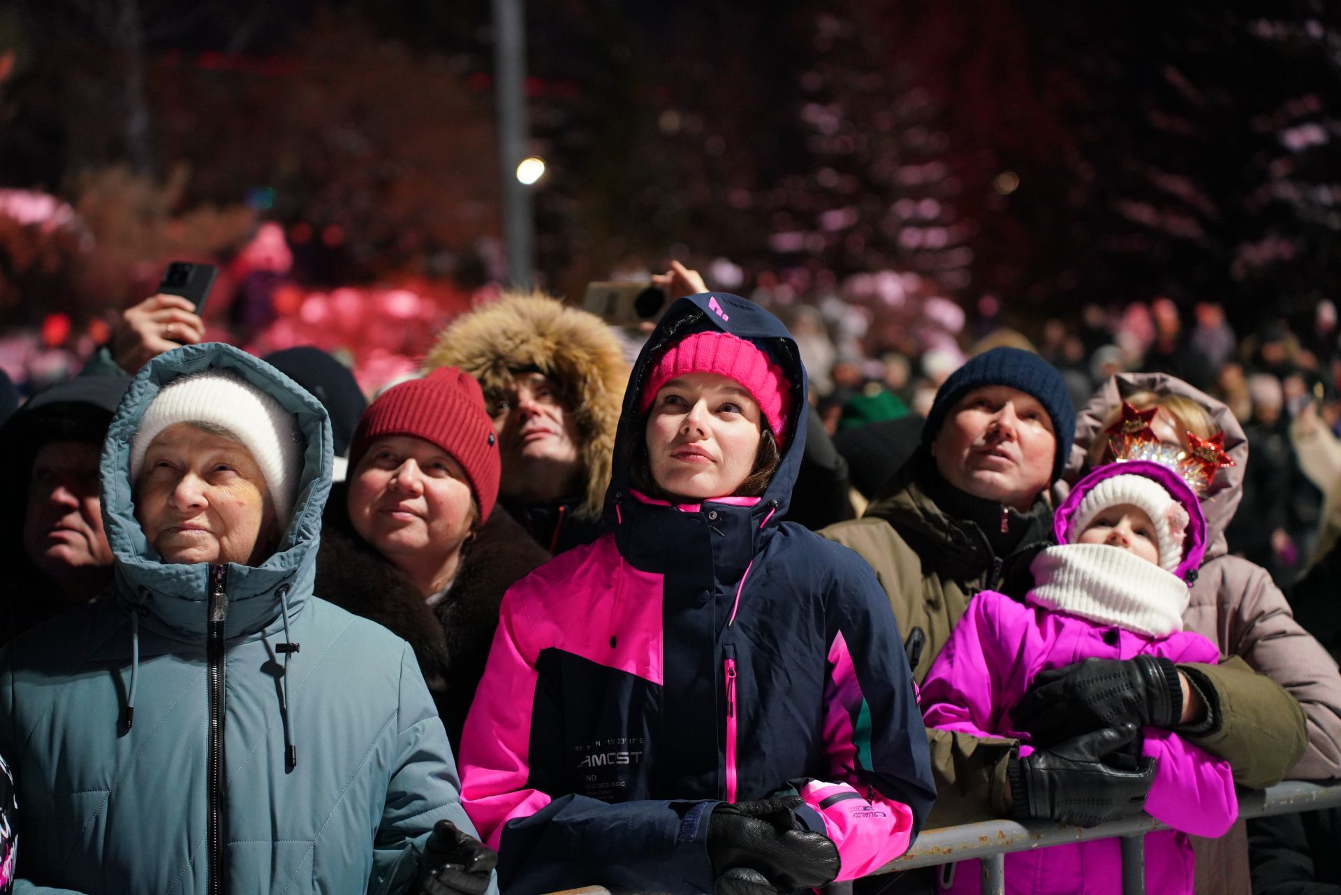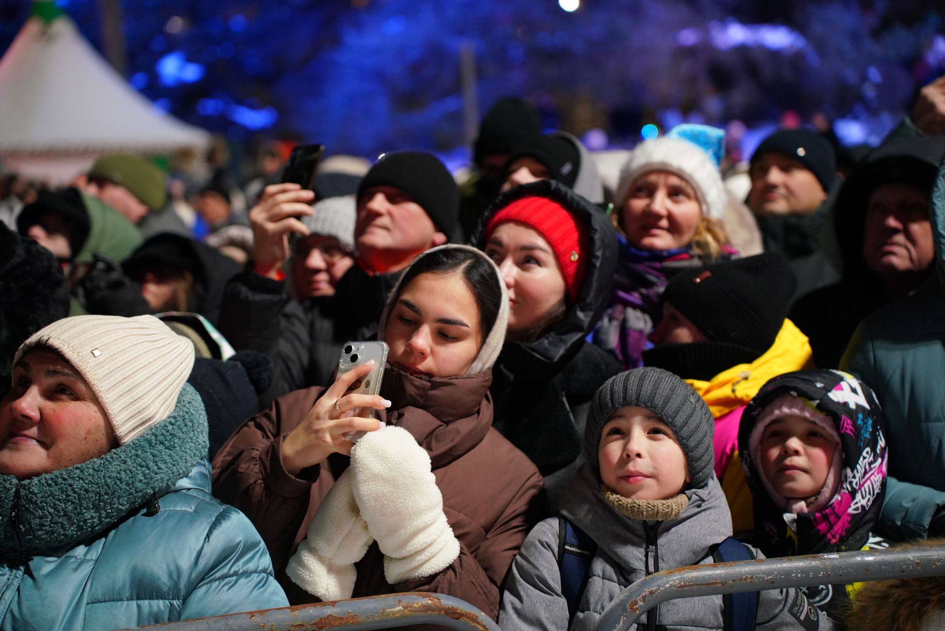 Сегодня на главной городской елке прошли праздничные гуляния. В 19 часов началась программа "Ночь счастливых надежд".