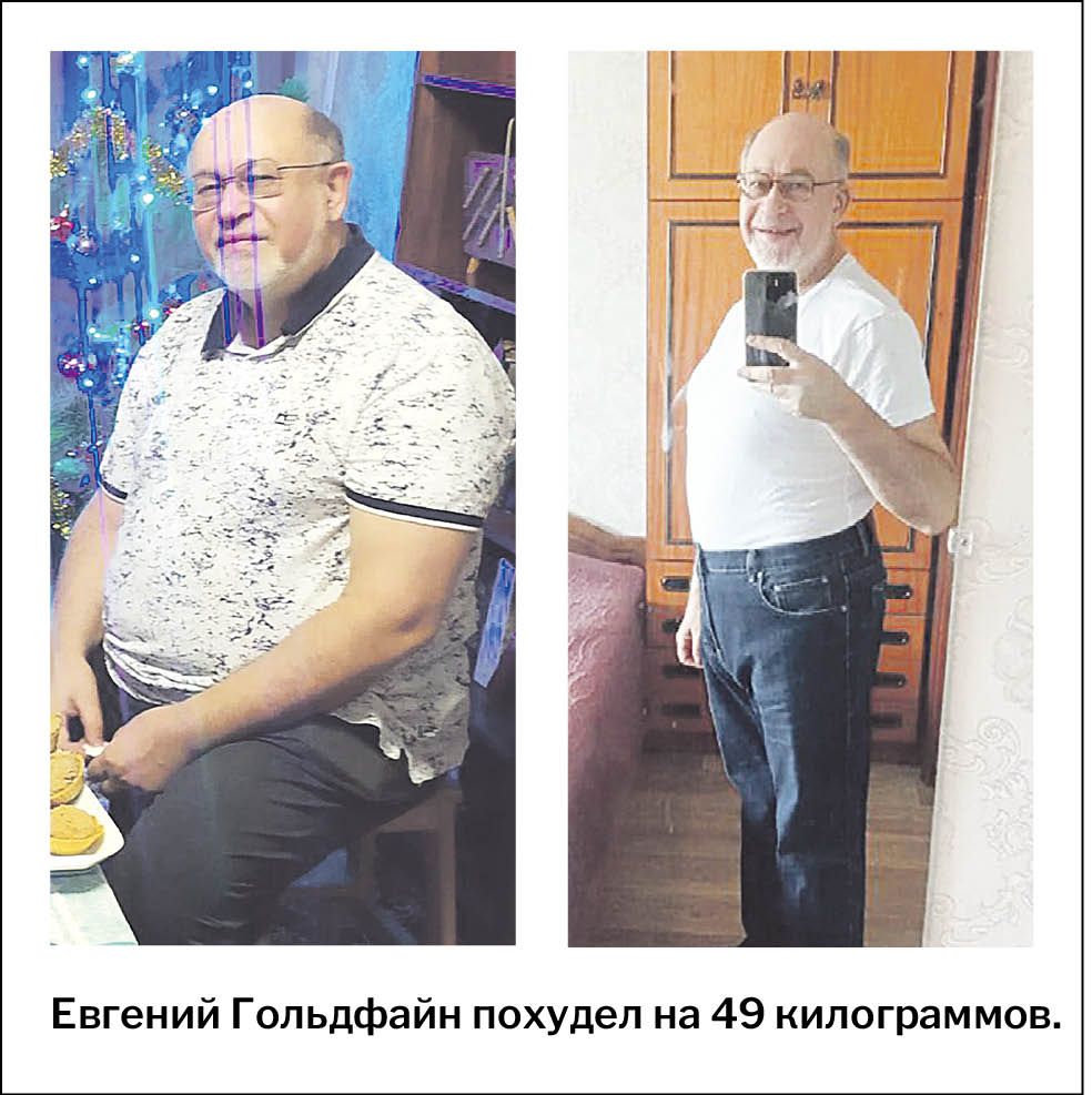 За год у Евгения Гольдфайна ушло 40 килограммов. При росте в 180 сантиметров планировал довести вес до 80 килограммов. Но когда вес достиг 90 килограммов, медики сказали, что дальше худеть не стоит. Давление снизилось со 140 до 120.