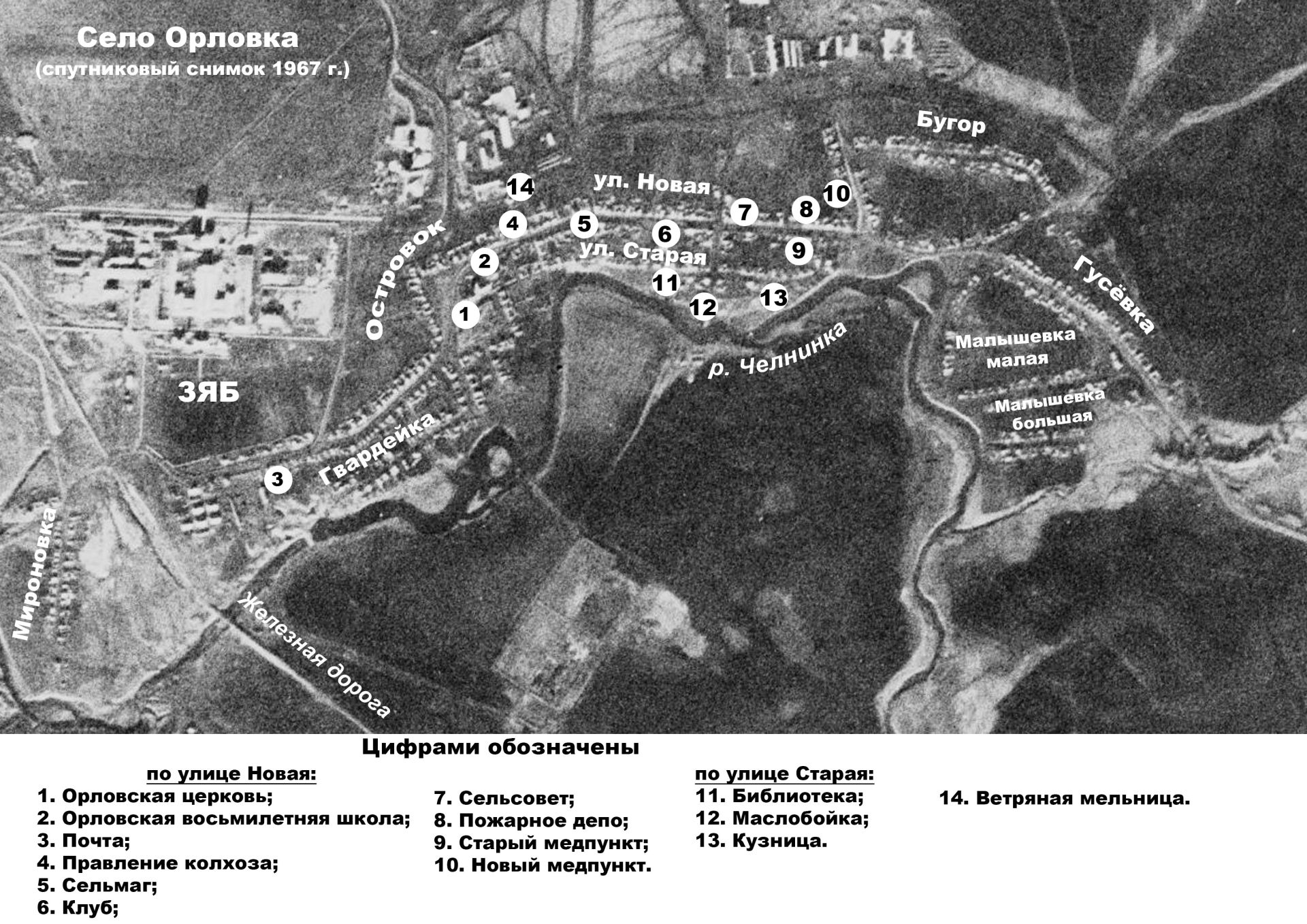 Деревня Мироновка тоже считалась частью Орловки. Пространство в сторону Камы называлось «зады», а за орловским кладбищем были «луга». Рядом с Мироновкой были «Чудские» или «Чутчевские» луга. Село Боровецкое называли Боровецк.