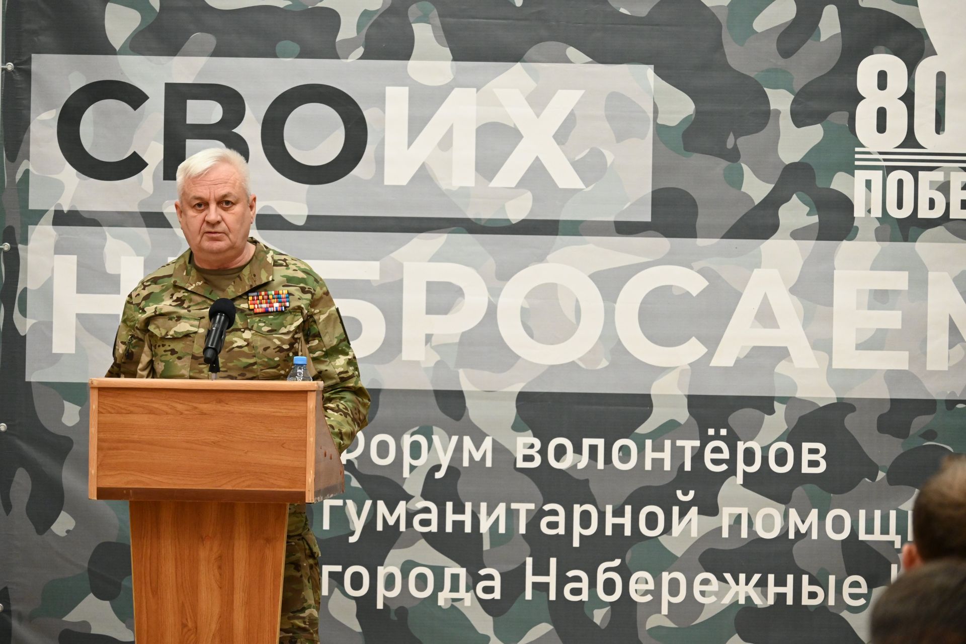 Вспомнил в своем выступлении глава города и команду Рустама Гатина, которая уехала в прифронтовой город Лисичанск, чтобы каждый день в течение 2,5 лет кормить людей.