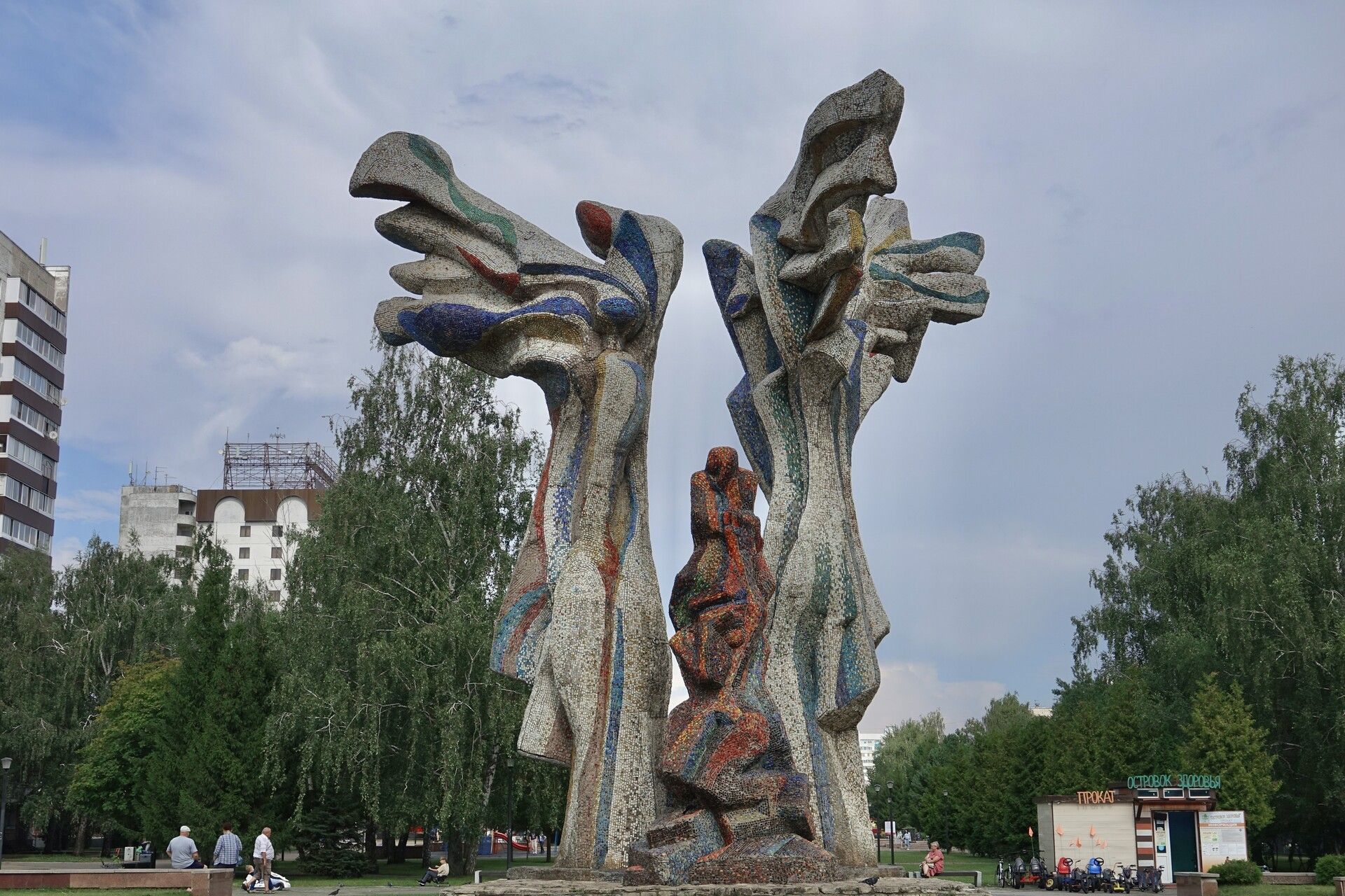 – Допустим, на общественных пространствах – сквер ЖКХ, недалеко от дельфинария. Там установлены фигуры девушки с метлой и на уровне земли из люка выглядывает сантехник. Однозначно, скульптуры Ильдара Ханова. Возьмем конкретно его скульптуру «Энергия» у Боровецкого моста. Мало кто знает, что он увидел реакцию атомного распада в журнале «Наука и жизни». И это вдохновило его на создание скульптуры. Она много лет пробыла под мостом. Ее не могли поднять, потому что не было такой техники. Посодействовал Николай Бех, генеральный директор КАМАЗа.