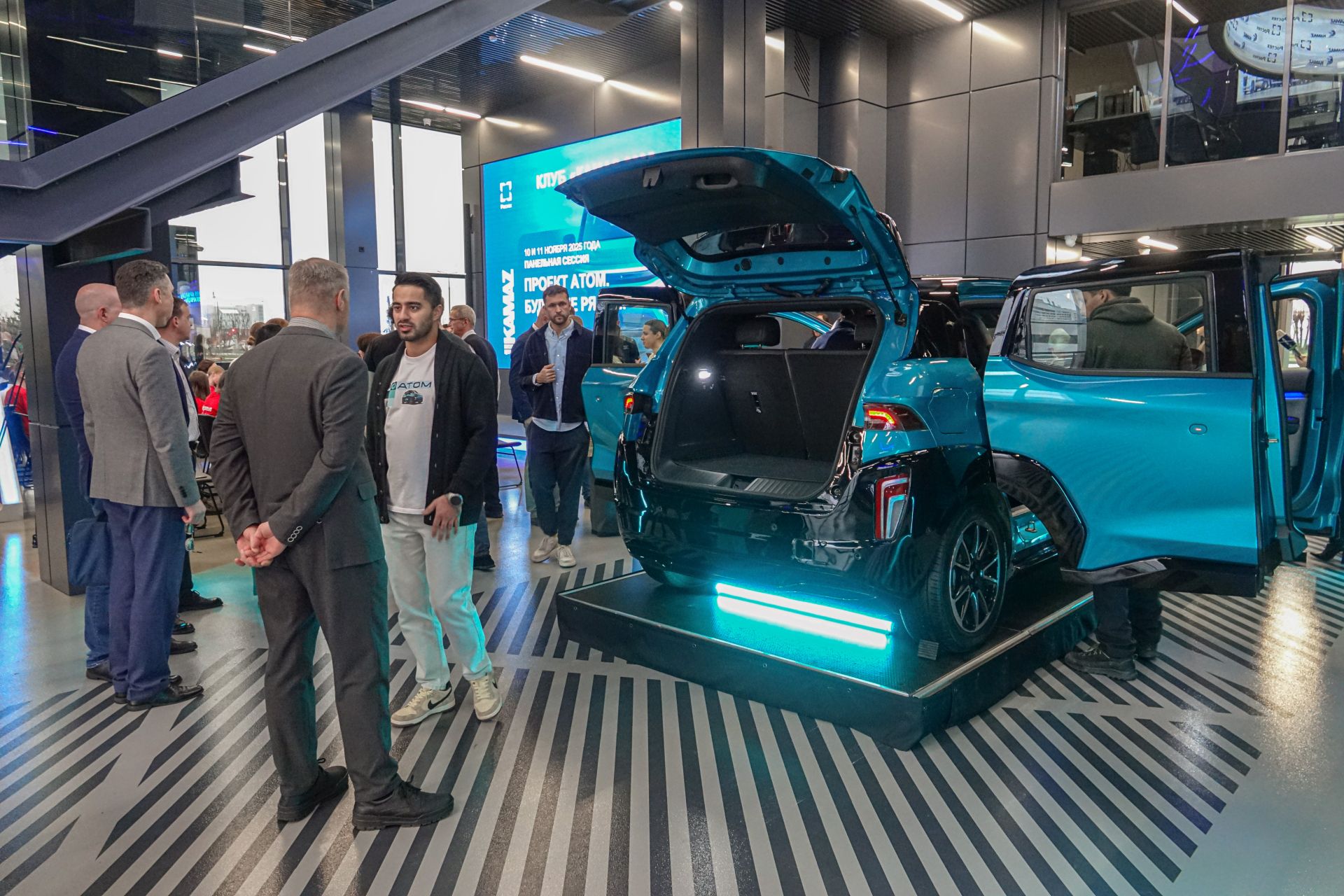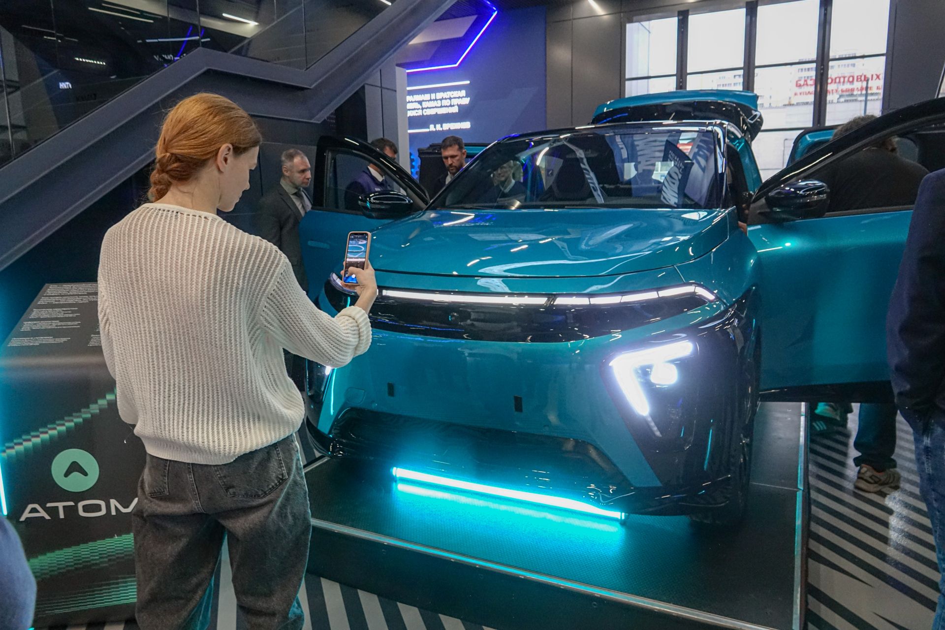 «Первый российский серийный электромобиль – полностью разработка нашей страны. В первую очередь, это российская платформа, что означает – мы сможем делать не только данную модель, но и другие – повыше, побольше, подлиннее. Над «Атомом» работала большая команда – 1,5 тысяч человек, в него интегрирован не только опыт России, но и иностранных коллег. Многие из них специально были удостоены гражданства России. У машины много авторских элементов – уникальные распашные двери, нет большого количества экранов в салоне, как сейчас принято у западных и восточных коллег. Было сделано специально, так как человек итак постоянно находится в потоке информации, поэтому нам хотелось создать в салоне зону когнитивного расслабления», – рассказал директор по бренду, маркетингу и коммуникациям компании «Атом» Никита Березовский.