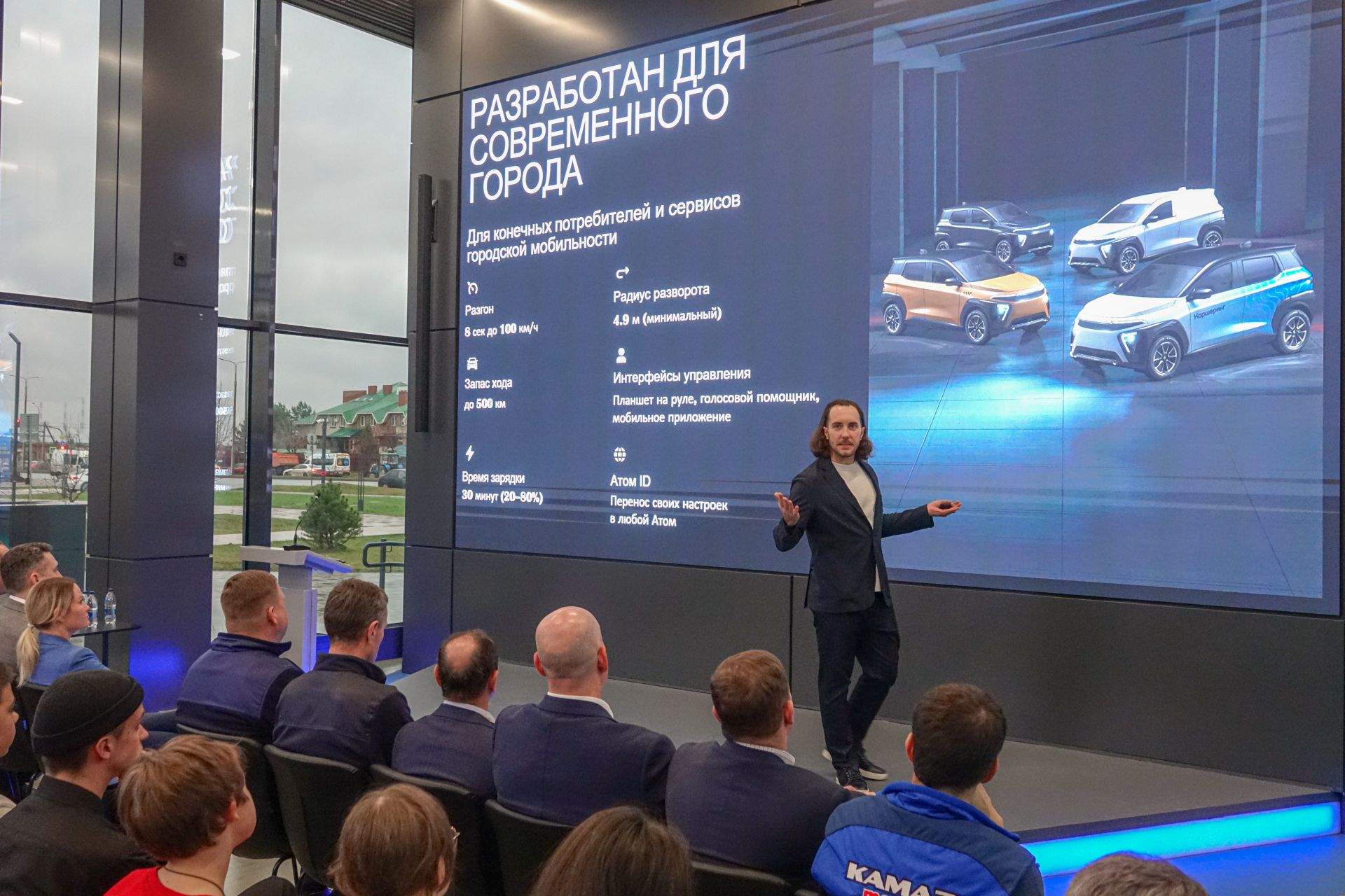 В визит-центре КАМАЗа Набережных Челнов показали прототип российского электромобиля «Атом».