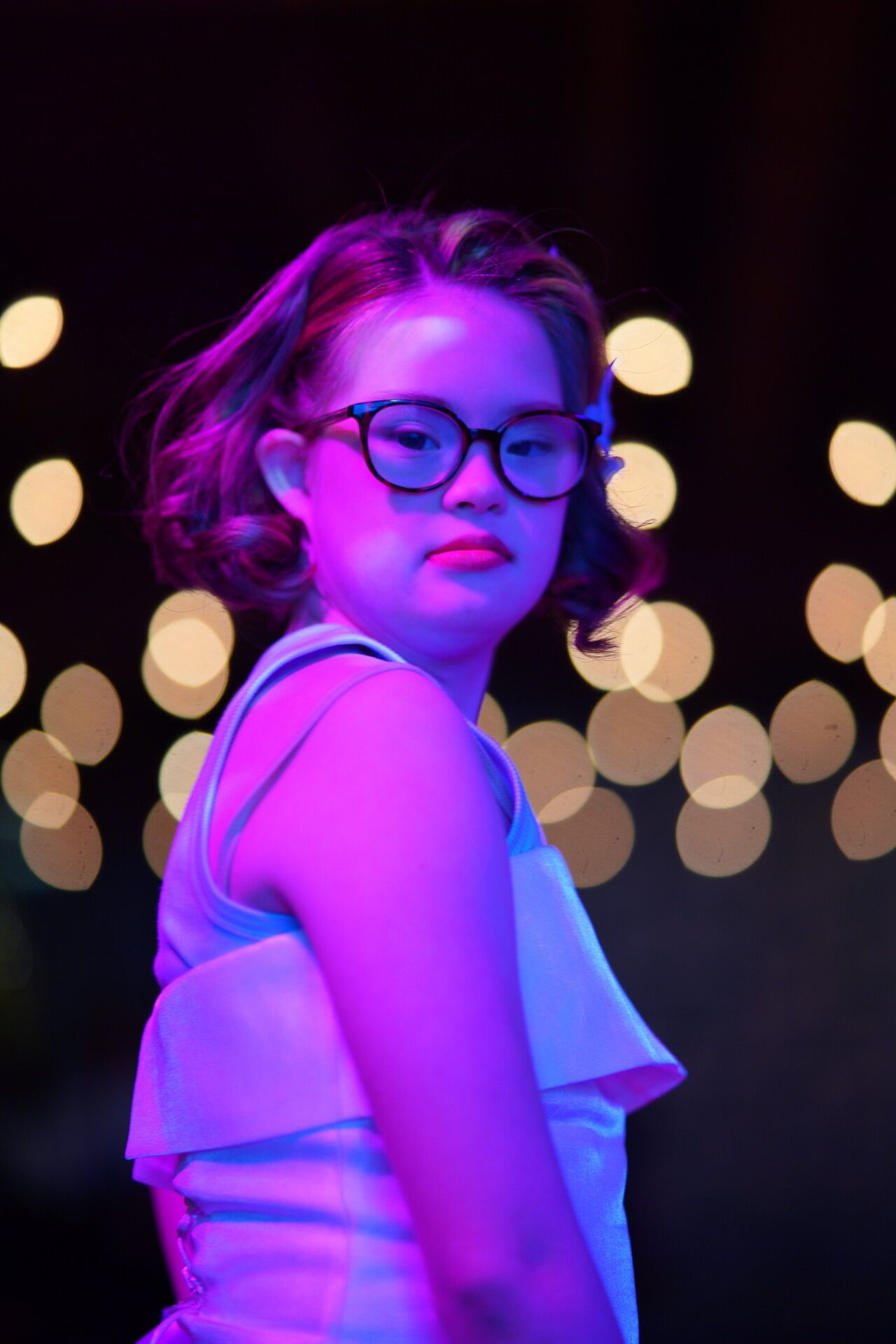 Самире Моргоевой 14 лет, у нее синдром Дауна, девочка была самой улыбчивой и уверенно держалась перед зрителями. На красную ковровую дорожку она вышла в вечернем голубом платье, а в фотосете ее показали с красными локонами и в чёрных очках.