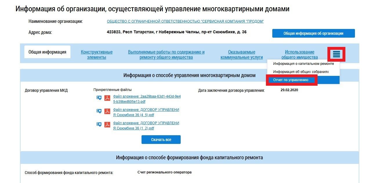Как найти отчет по работе управляющих компаний Челнов