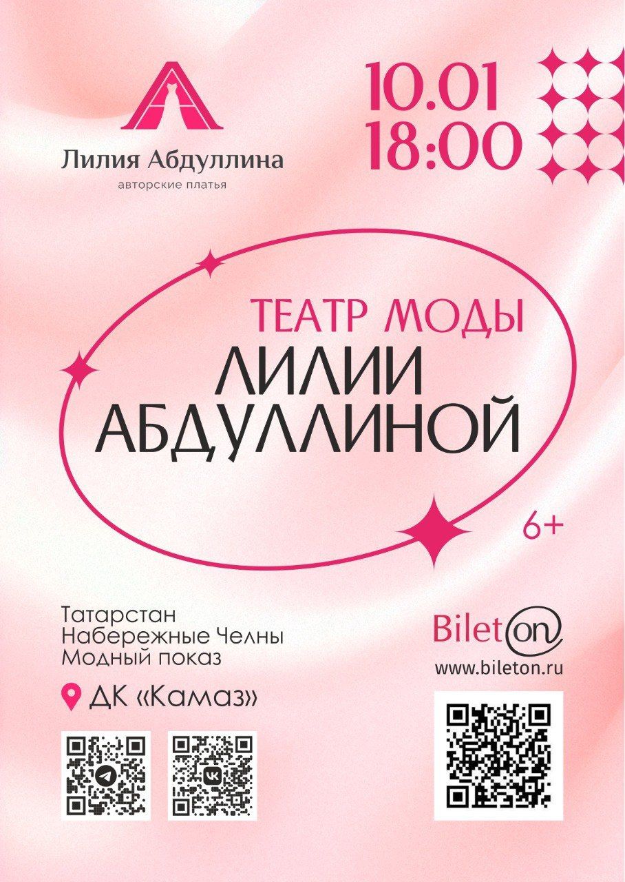 Если вы еще не окунулись в мир авторских платье дизайнера, то у вас есть, такая возможность. Начните 2026 год красиво – с фэшн-шоу от Театра моды Лилии Абдуллиной, он состоится 10 января, в 18:00, в ДК «КАМАЗ». Билеты можно приобрести на сервисе «Билетон».