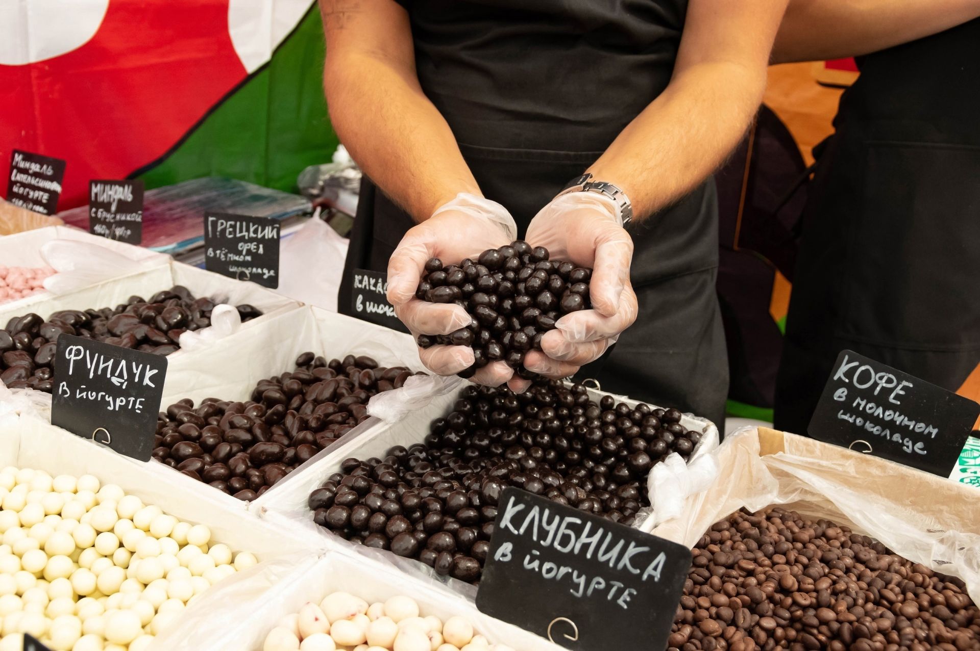 Настоящие гурманы оценят богатый выбор сортов чая из Индии и Крыма. Для сладкоежек привезут мармелад, кисели без добавления сахара, пряники ручной работы от мастера из Набережных Челнов. Для полезного перекуса ягоды и орехи в шоколадной глазури, крымские сладости, продукция из кедрового ореха. На ярмарке можно попробовать более 10 видов пахлавы, рахат-лукум, конфеты ручной работы из перетертых малины, клубники и инжира, свежие гранаты и экзотические манго, гранатовый сок. Натуральный мёд из Удмуртии и регионов России. Из Узбекистана привезут специи, восточные сладости, орехи. Будут представлены качественные ароматные масла холодного отжима из Самарской области и Удмуртии.